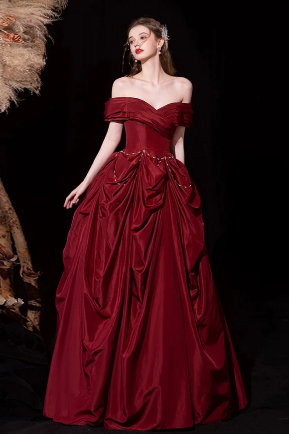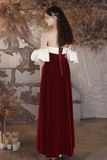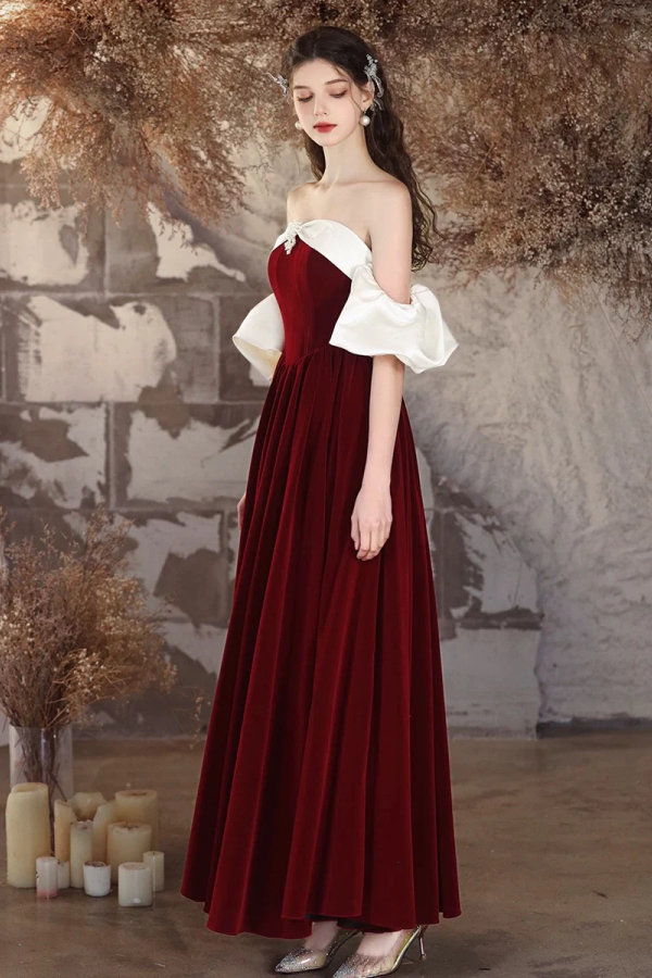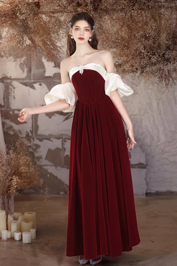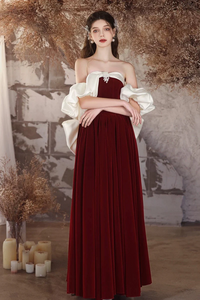A Line Velvet Burgundy Long Prom Dress, Burgundy Long Formal Dress APP1075