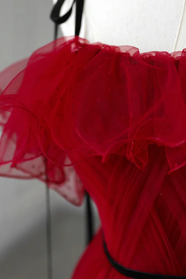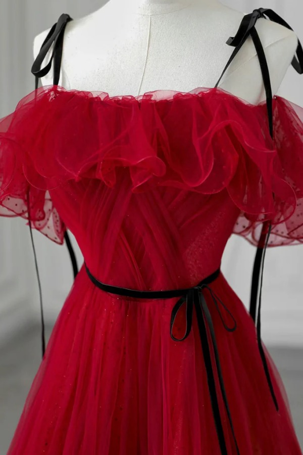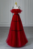 A Line Tulle Burgundy Long Prom Dress, Burgundy Long Formal Dress APP1021