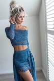 Anneprom new Two Piece Long Sleeves Lace Prom Dress With Slit APP0200