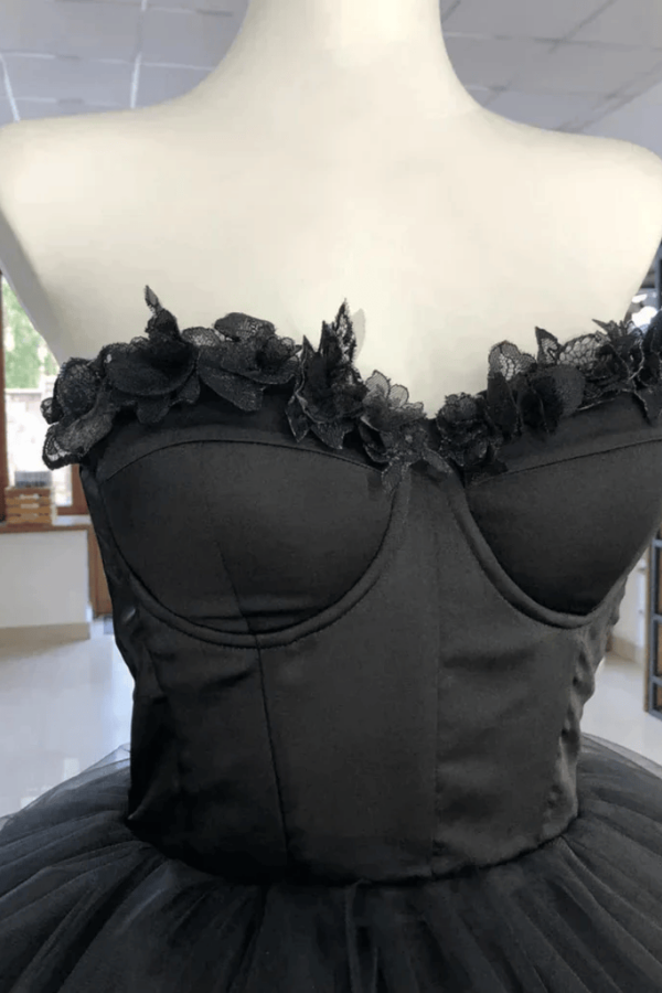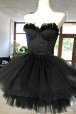 Black Tulle Sweetheart Short Homecoming Dress, Black Prom Dress APH0298