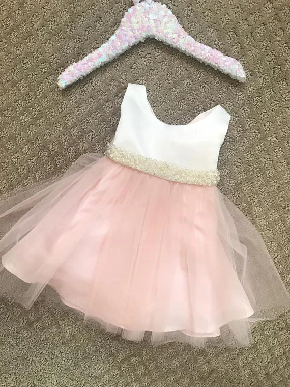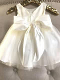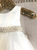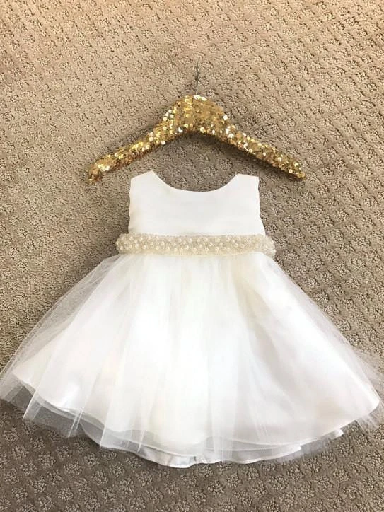Anneprom Cute White Knee-length Beaded Flower Girl Dresses With Bowknot AFL0003