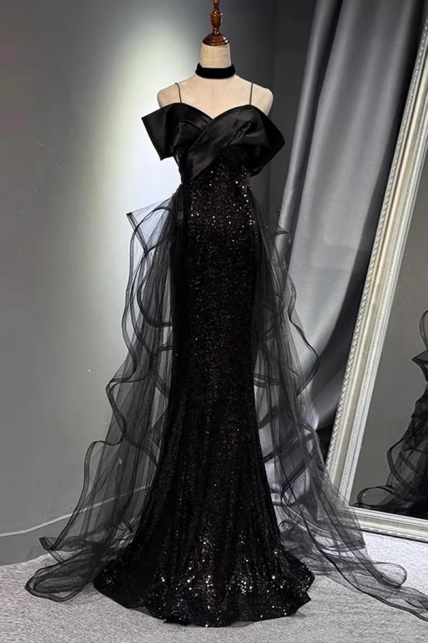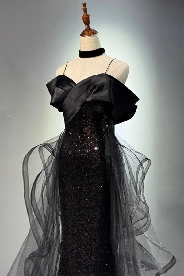 Sparkly Black Evening Gown, Off Shoulder Mermaid Prom Party Dress APP1282