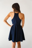 Anneprom A Line Dark Navy Cute Halter High Neck Satin Short Homecoming Dress APH0133