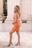 Anneprom Orange Sparkly Tight Homecoming Dress, Bodycon Backless Short Prom Dress APH0198