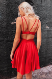 Anneprom Red A line V neck Spaghetti Straps Homecoming Dresses, Graduation Dress APH0177