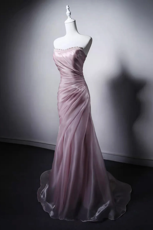 Mermaid Sweetheart Neck Sweep Train Pink Prom Dress with Beads APP1295