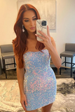Strapless Light Blue Sequins Short Homecoming Dress APH0217