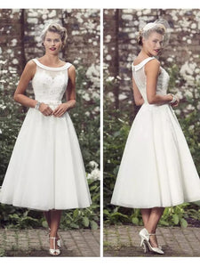 Anneprom Chic A-line Wedding Dresses Scoop Modest Ivory Tea Length Wedding Dress APW0236