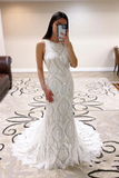 Anneprom Sheath Lace Wedding Dress Open Back Bridal Dress With Court Train APW0398