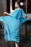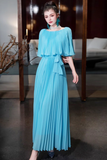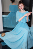 Blue Chiffon A Line Long Wedding Party Dress, Blue Chiffon Prom Dress APP1129