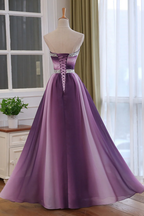 Chiffon Sweetheart Gradient Beaded Long Party Dress, A Line Chiffon Prom Dress APP0994