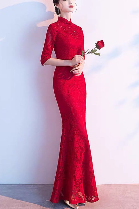 Anneprom Chic A line Bateau Burgundy Lace Prom Dress Long Sleeve Tulle Evening Dresses APP0594