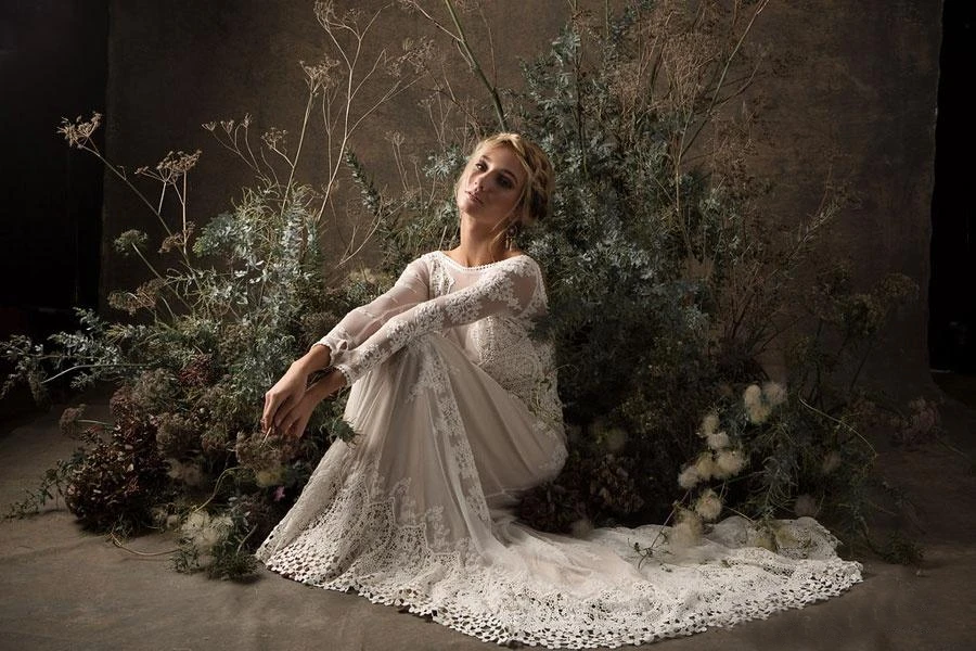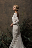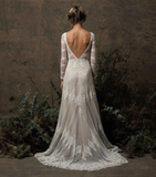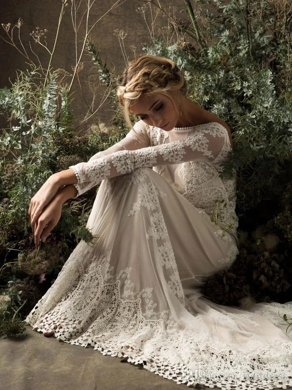 Anneprom A-line Bateau Long Sleeve Lace Gorgeous Wedding Dress Modest Bride Gowns APW0279