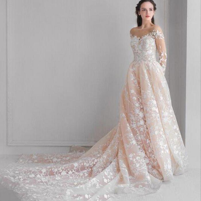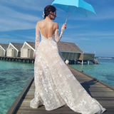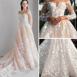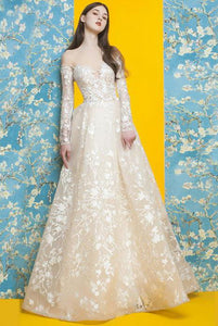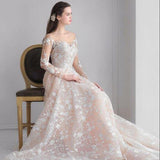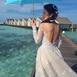 Anneprom Chic V-neck Prom Dress A-line Long Sleeve Bateau Long Prom Dress Wedding Dress APW0296