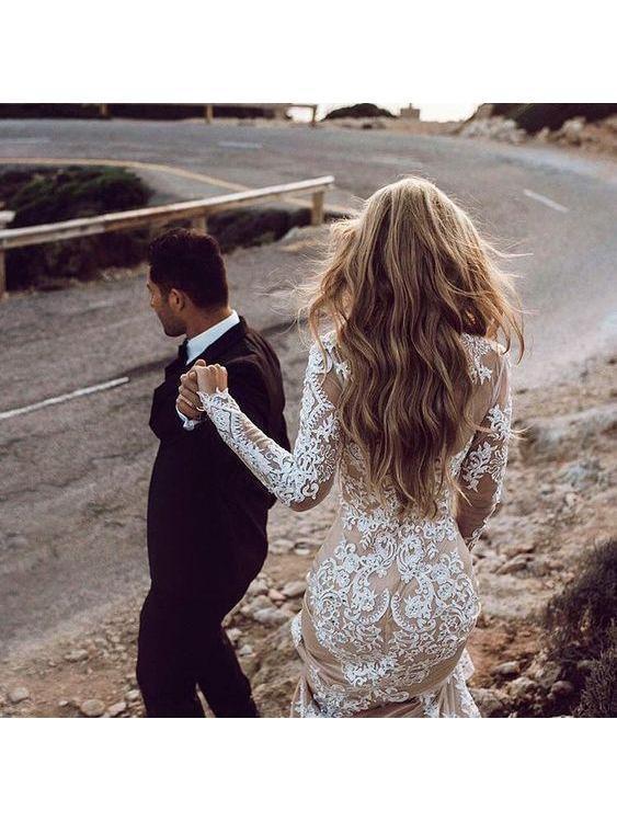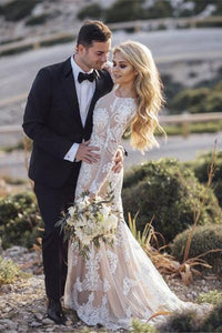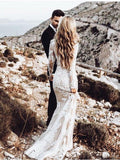 Anneprom Mermaid Long Sleeve Lace Tulle Boho Wedding Dresses Rustic Bridal Dress APW0364