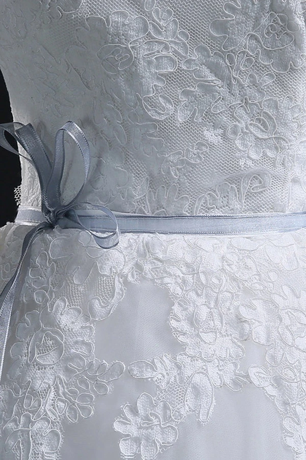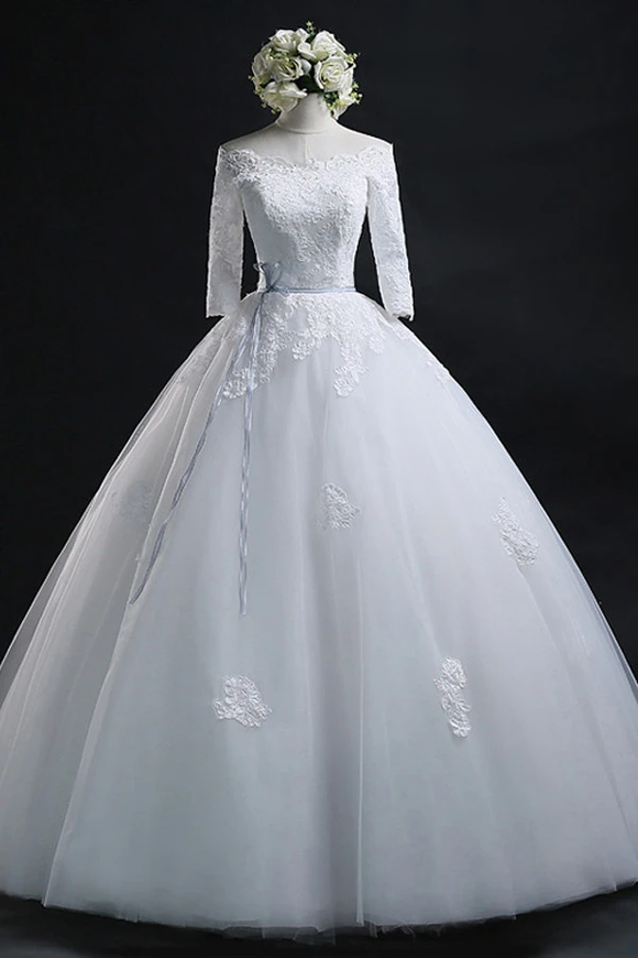 Anneprom Scoop Ball Gown Bateau Long Tulle Wedding Dress With Lace APW0020