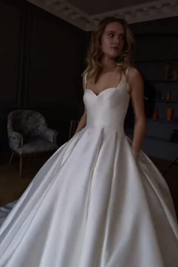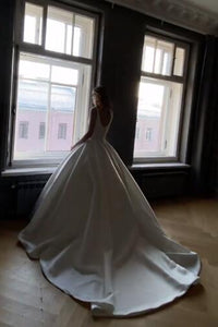 Anneprom classic A-line sweep train satin sexy wedding dress APW0322