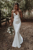 Anneprom Simple Spaghetti Straps Mermaid Beach Wedding Dress, Elegant Bridal Dress APW0396