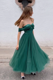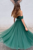 A Line Green Tulle Prom Dress, Tea Length Green Formal Party Dress APP0967