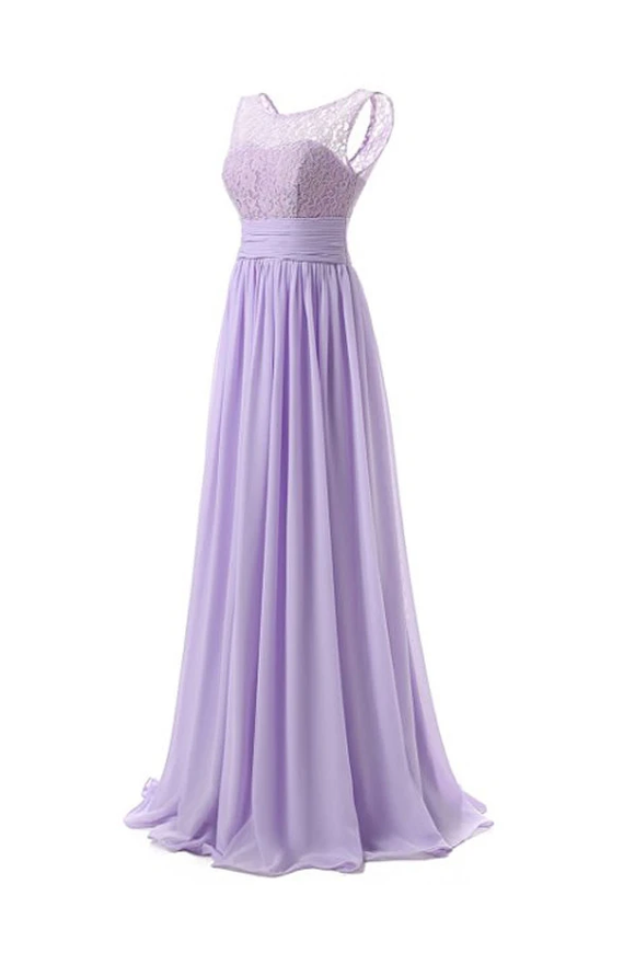 Anneprom Chiffon Long Prom Dress Scoop Bridesmaid Dress Lace APB0006
