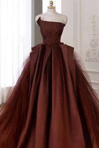 Chic A Line Strapless Simple Long Prom Dress Tulle Evening Formal Dress APP0815