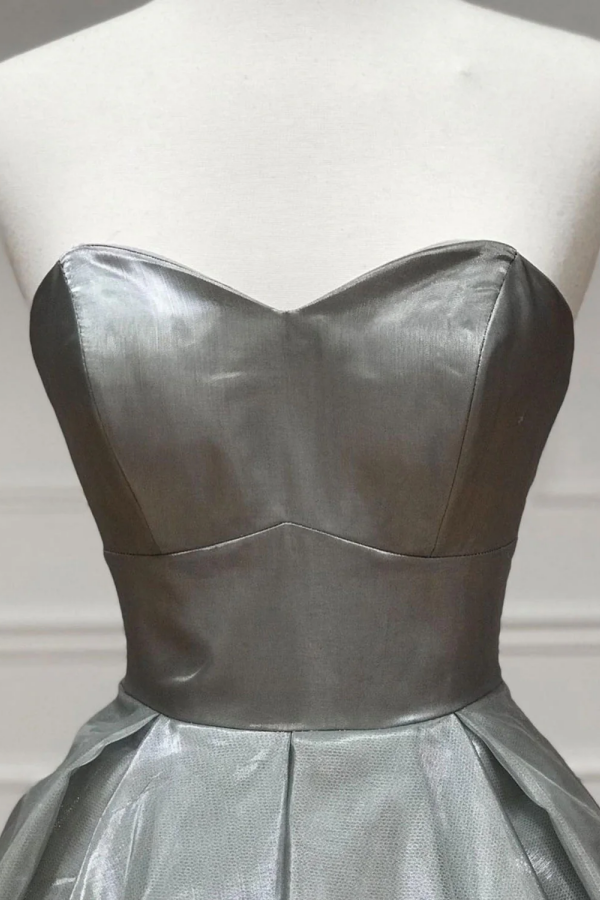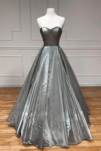 Simple sweetheart neck satin gray long prom dress gray formal party dress APP0963
