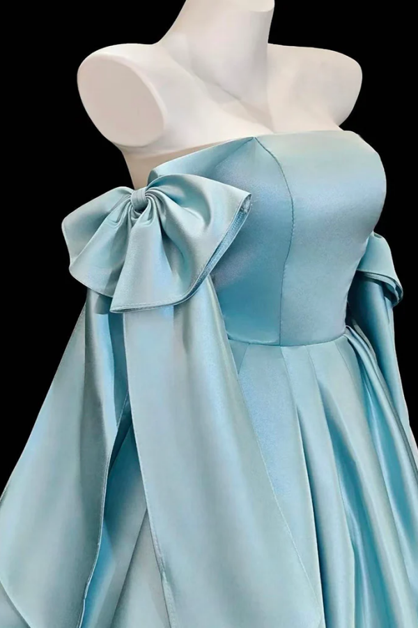 A Line Satin Blue Short Prom Dress with Bow Tie APH0351