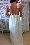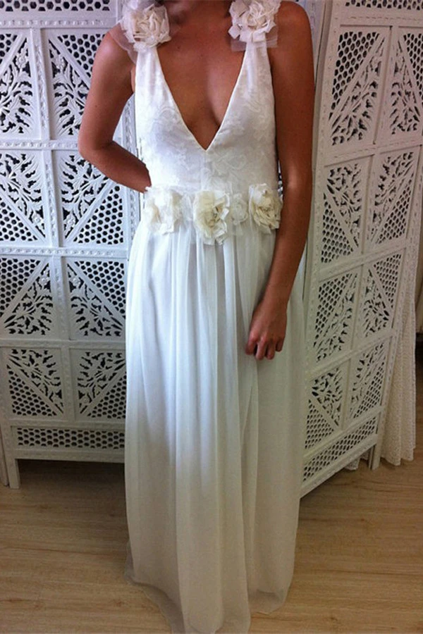 Anneprom V-Neck Floor Length Chiffon Tulle Wedding Dress With Handmade Flower APW0014