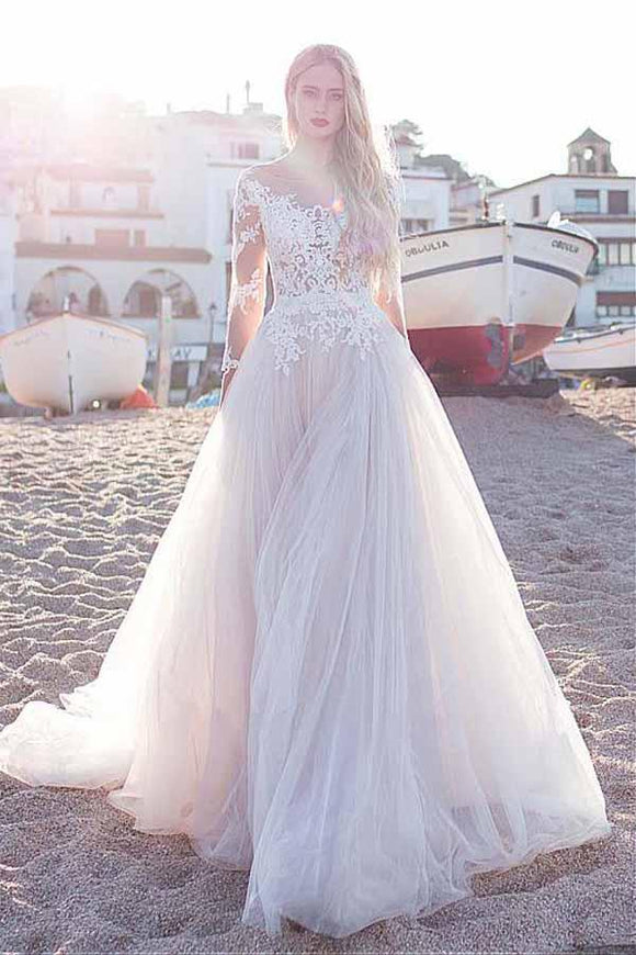 Anneprom Elegant A-Line Long Sleeves White Lace Wedding Dress Bridal Gowns APW0072