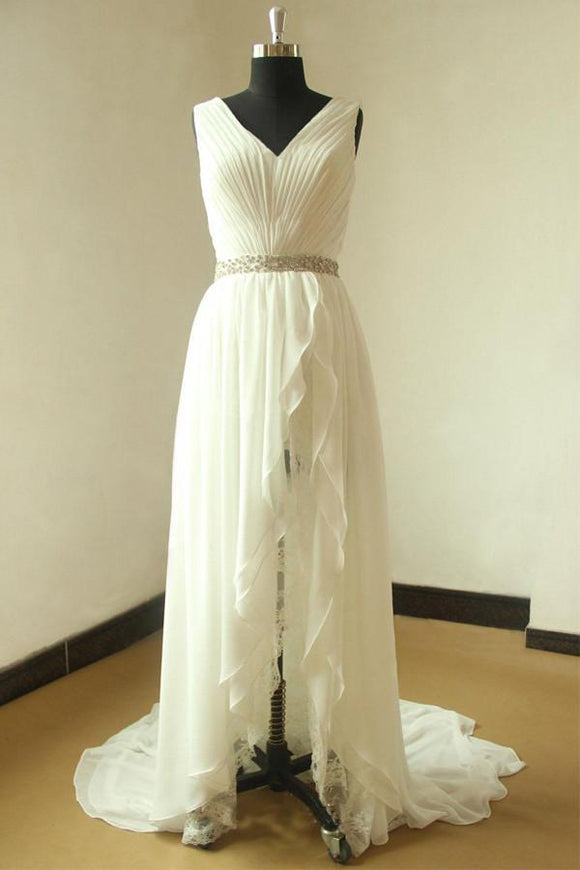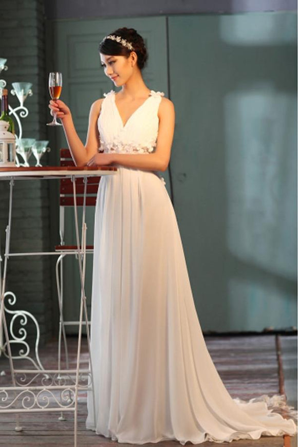 Anneprom Simple V-Neck Sleeveless Drop Pleated Beach Wedding Dresses APW0076