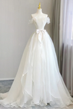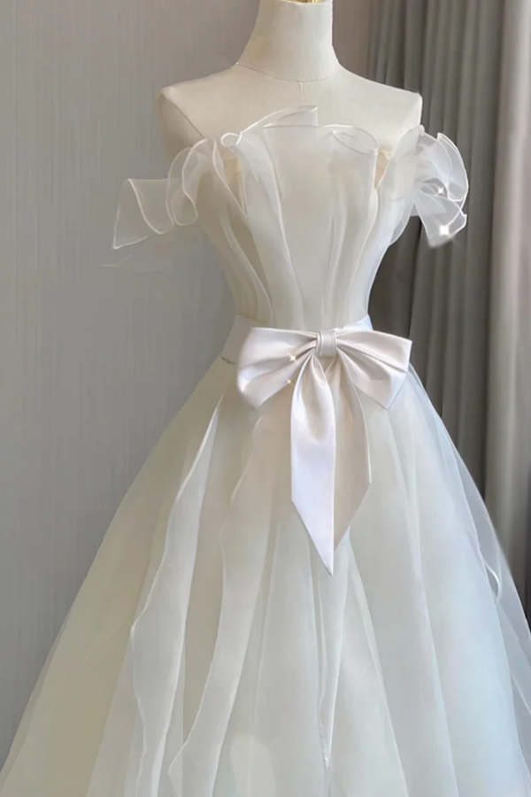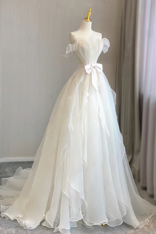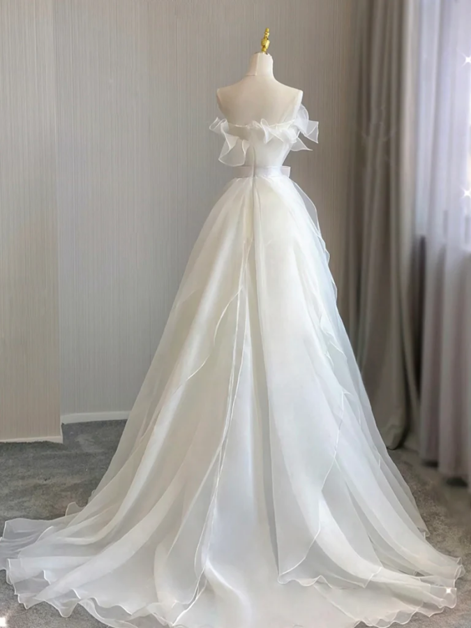 A Line Organza White Long Prom Dress, White Long Formal Dress APP0895