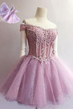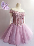 Anneprom A-line Short Prom Dress Off-the-shoulder Juniors Homecoming Dress APH0092