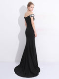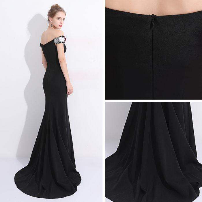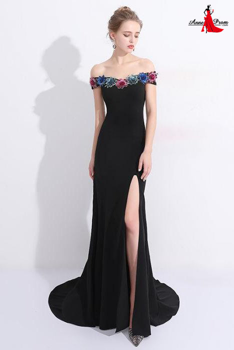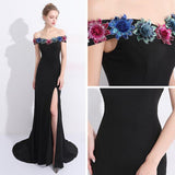 Anneprom Chic Mermaid Prom Dress Black Off Shoulder Flower Long Prom Dress Party Dress APP0355