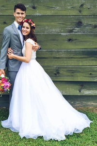 Anneprom Jewel Neck A-Line Beading Organza Long Wedding Dress APW0096