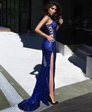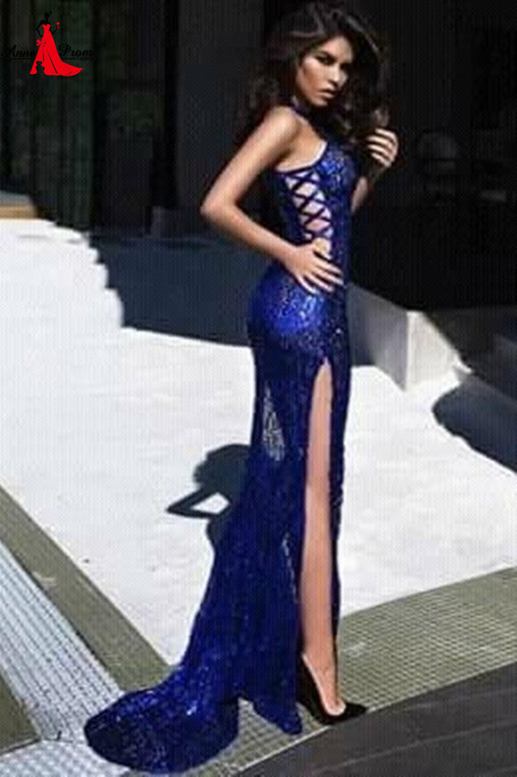 Anneprom Long prom dresses,Blue Floor-length Lace Prom Dress/Evening Dress APP0462