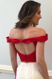 Anneprom Mermaid Prom Dresses Off the shoulder Red Floral Two Pieces Prom Dress Evening Dress APP0589