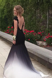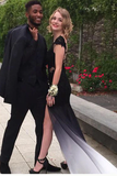 Anneprom Ombre Trumpet Court Train Capeed Sleeve Appliques Side Slit Prom Dress, Formal Dress APP0514