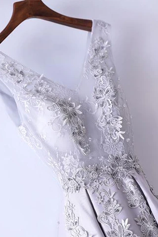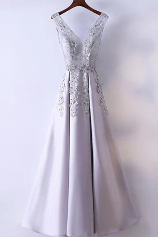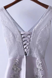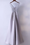Anneprom Silver Prom Dress Simple Lace A-Line V-Neck Cheap Long Prom Dress APP0289