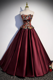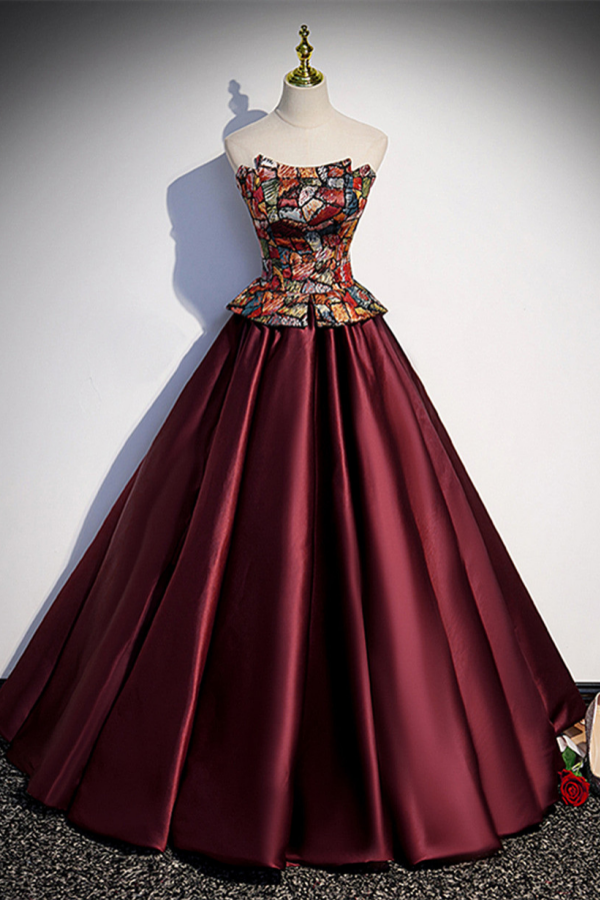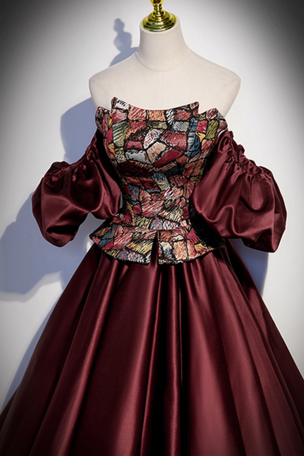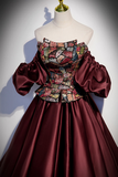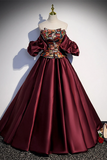 Elegant Burgundy Satin Off Shoulder Evening Dress, Burgundy Prom Dress APP0908