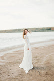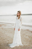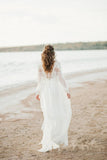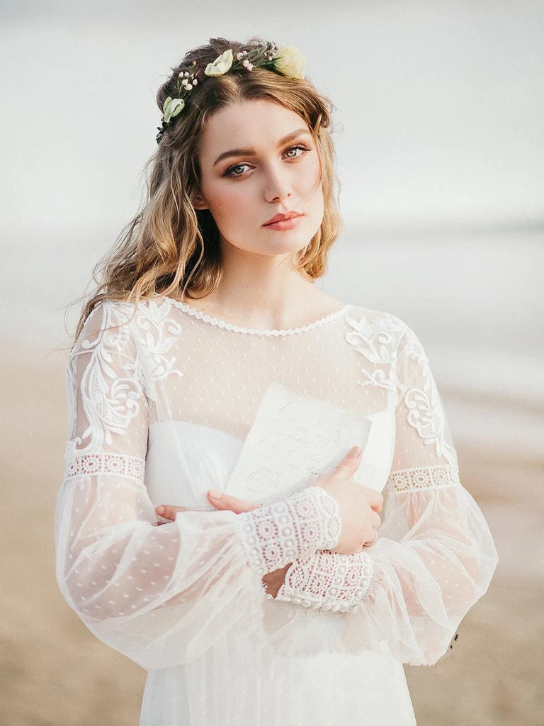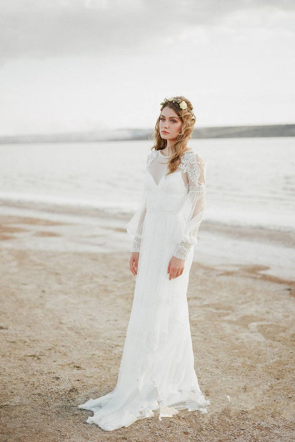Anneprom See Through Scoop Beach Lace Wedding Dresses Long Sleeve Romantic Boho Wedding Dress Bridal Gowns APW0270